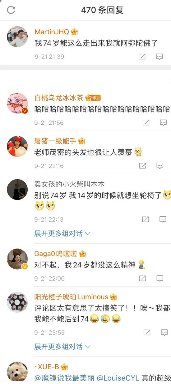 年轻网友则大为惊叹:“我74岁能这么走出来就阿弥陀佛了。”“这肺活量,能吃两个我吧。”↓↓