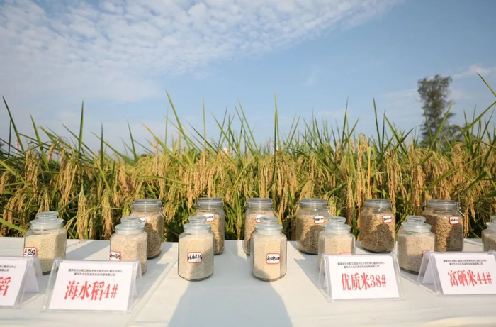 本届“农民丰收节”将一直持续到10月8日,共设置了18个精彩纷呈的活动。 大足区委宣传部供图现场展出的各种稻米。大足区委宣传部供图