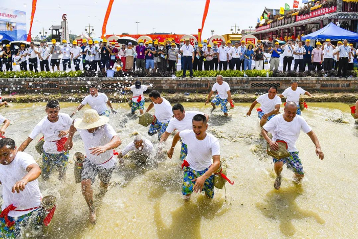 启动仪式现场,当地村民参加摸鱼比赛,畅享丰收喜悦。龚长浩 摄
