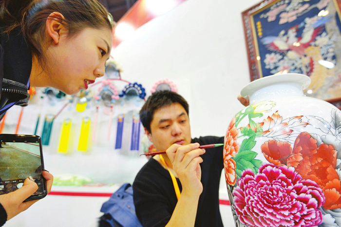 高鹏买过一套故宫的茶具,名叫“柿柿”如意。“它会给受众方一个心理暗示,就是我买走的这个茶具,有事事如意的美好寓意”。他觉得山西砖雕、木雕、剪纸、刺绣等民间文化蕴含的意义都可以挖掘一下,比如说石榴,就是多子多福,白菜是摆财,蝙蝠就是福气,可以把这些古老元素提炼出来,然后再跟现在流行的具体产品结合。
