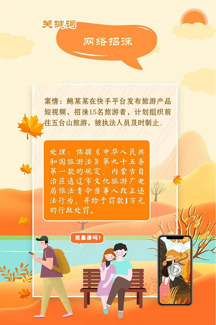 央视网消息:据“文旅之声”微信公众号消息,近期,文化和旅游部持续加强旅游市场执法,重点整治未经许可经营旅行社业务、“不合理低价游”等违法违规经营行为,有力地规范了旅游市场经营秩序,为旅游业复工复产复业营造了良好的市场环境。