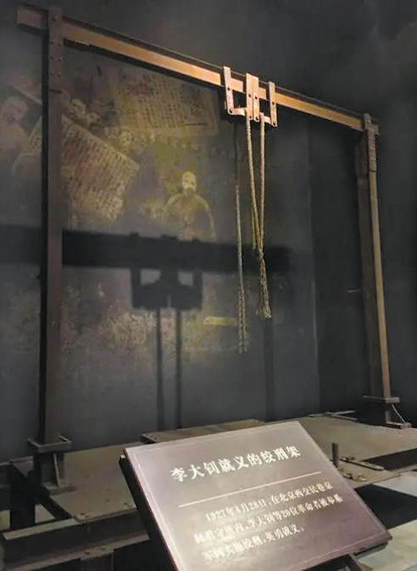 当日下午2时许,李大钊等20人被押往刑场执行死刑。李大钊第一个走上绞刑架。他身着灰布棉袍,浓黑的双眉下目光淡定,脸上泰然自若,宛如平日。李大钊慷慨陈词: