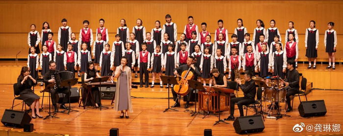 除演唱“神话”外,龚琳娜近些年还创作了以24节气、古诗词为主题的作品,并合作少儿合唱团进行线下演出。图来自受访者微博