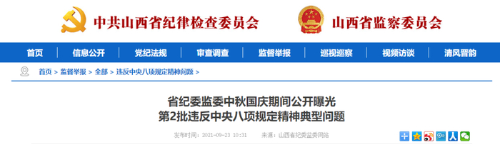 原标题:省纪委监委中秋国庆期间公开曝光第2批违反中央八项规定精神典型问题