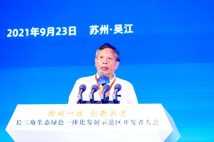会上,同济大学原常务副校长、联合国环境规划署—同济大学环境与可持续发展学院院长伍江作了题为《关于推进长三角生态绿色一体化示范区碳达峰碳中和工作的思考和建议》的主旨演讲。