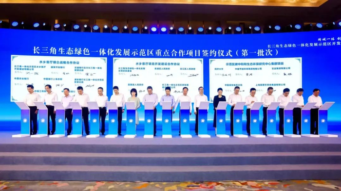 当日,作为长三角一体化示范区重点合作项目,长三角可持续发展研究院与中国节能环保集团、中煤地质总局、宝业集团、上海国惠环保科技集团正式签约共建4个碳中和与生态环保研究中心。