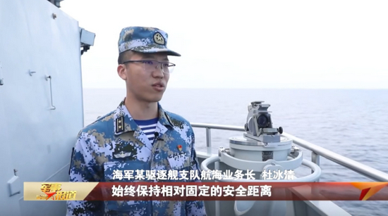 海军某驱逐舰支队航海业务长杜冰清: 编队航行补给是一项安全风险较高的训练内容,要求穿行舰艇始终保持相对固定的安全距离,这对舰体操纵和航海保障提出了很高的要求。我们必须实时提供精确数据,便于指挥员精准操纵舰艇,确保补给安全、顺利。