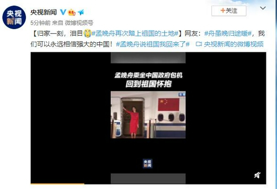 网友:#舟虽晚归途暖#,我们可以永远相信强大的中国!#孟晚舟说祖国我回来了#