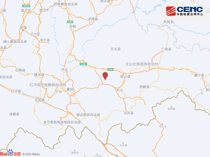 云南文山州文山市发生2.9级地震,震源深度10千米 中国地震局网站 2021.09.2523:30 关注 #地震快讯#中国地震台网正式测定:09月25日23时23分在云南文山州文山市(北纬23.58度,东经103.99度)发生2.9级地震,震源深度10千米。