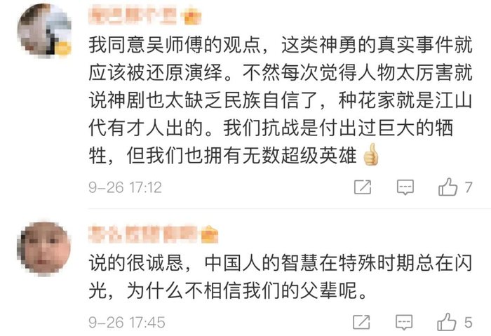 吴京说,“抗日战争时期,八路军和新四军用轻武器打下了敌军14架飞机,这里面都是中国人的智慧和勇气,我觉得应该去还原它、表现出来,剩下的交给观众评判。”