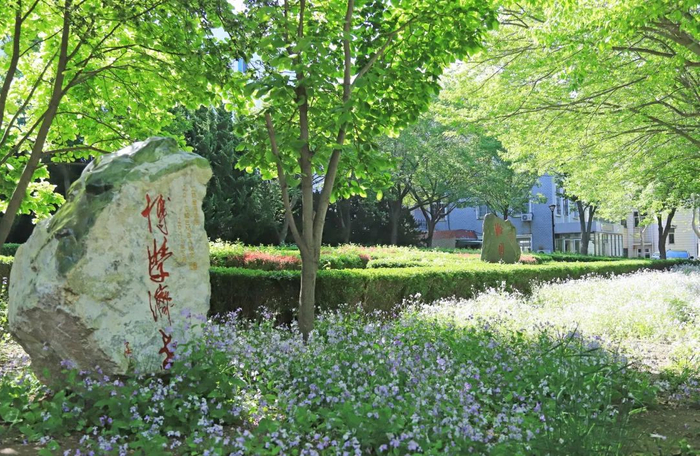 “博学”源于《礼记·中庸》“博学之,审问之,慎思之,明辨之,笃行之”,《礼记·儒行》“儒有博学而不穷,笃行而不倦”,意在突出为学的广度与深度,强调古今相通、中西结合,提升品德修养和专业才能。