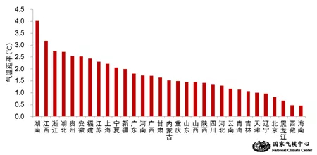 2021年9月1日-26日各省(区、市)平均气温距平(℃)。国家气候中心供图