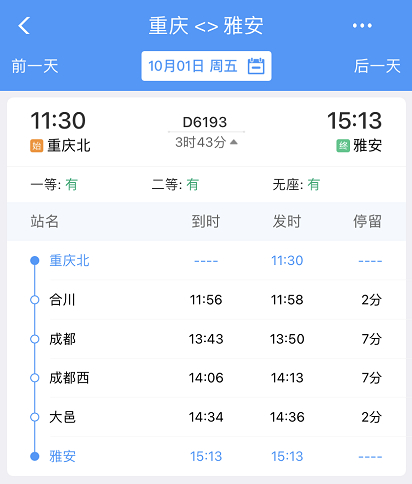 打算坐火车去四川雅安的朋友们