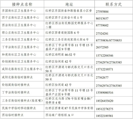 红桥区新冠疫苗各接种点信息一览表