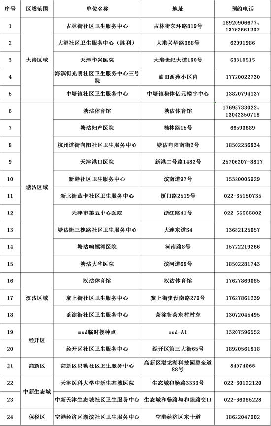 提醒:表中信息以最新消息为准,接种前请市民电话咨询。