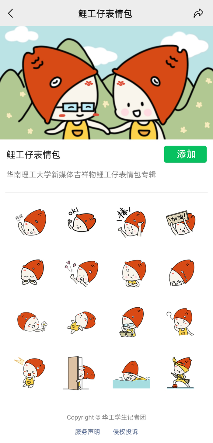 1. 打开微信表情商店,搜索“鲤工仔表情包”,再点击添加表情即可使用。