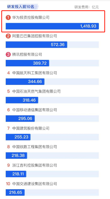 而在近日公布的2021中国企业500榜单榜单显示,在研发投入和发明专利数量排名方面,华为均位列第一。