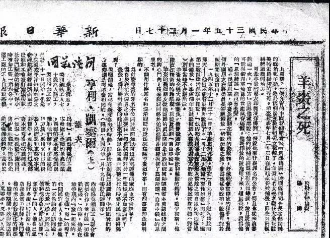 ▲《申报》刊登杨杏佛被国民党特务暗杀的报道天地能知忠烈心——武胡景