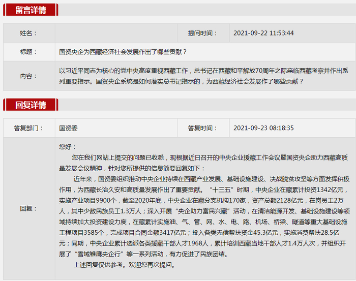 2021年9月国资委网站政务咨询栏目部分网友提出的咨询,我们初步做出了认真的回应,现选择五条关注度高、点击量高的问题,再次推荐分享。
