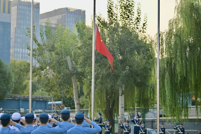 迎着初升的旭日,伴着雄壮的国歌