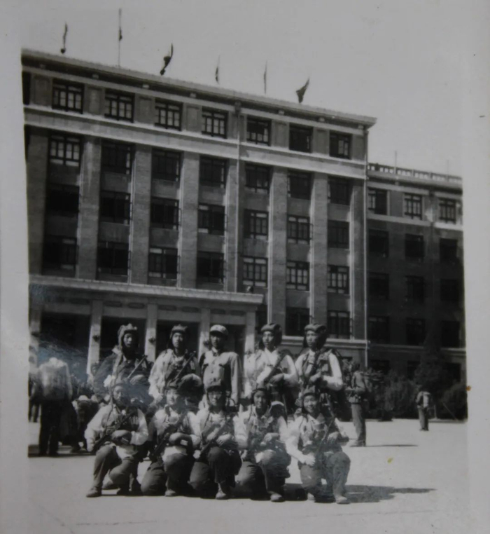 1964年北航47大班(无线电系)参加建国15周年国庆游行民兵队伍中的伞兵方队