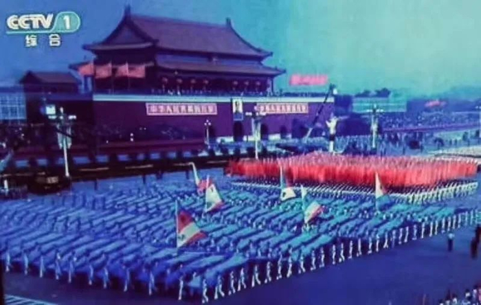 1984年10月1日,北航师生组成的方阵走过天安门