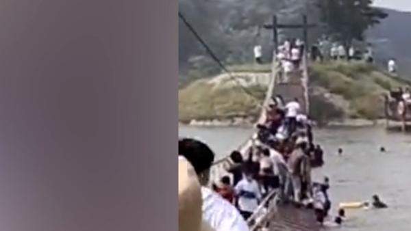 中牟雁鸣湖蟹岛景区水上吊桥断裂致,多人落水