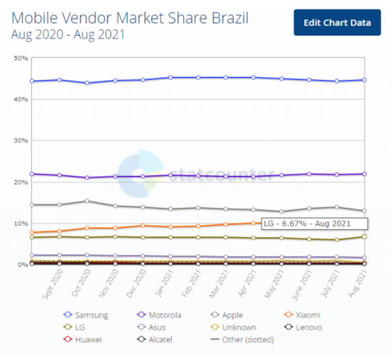 据Counterpoint分析师称:巴西是拉美地区最大的智能手机市场,三星在巴西的份额达到近50%。从数据来看,苹果自进入巴西市场以来,也未真正打开局面。