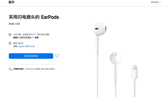 而在苹果中国的官网上可以看到,包装内容中不包含带有Lightning接口的EarPods。