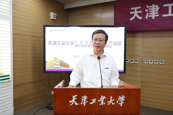 最后,校长夏长亮院士讲话。他代表天津工业大学全体师生对蒋子龙先生为国家、社会作出的贡献表示崇高的敬意!他强调,蒋子龙先生的文学创作活动与天津工业大学工科特色有着天然契合,在我校成立蒋子龙文学艺术研究院是全校师生和蒋先生本人的共同愿望,是学校全面贯彻党的教育方针,推进“双一流”建设,充分发挥高校人才培养、科学研究、社会服务、文化传承功能的重要举措。研究院将系统收集、整理、展示、研究蒋先生文学艺术作品,助力提升我校文化软实力,构建人才培养新平台。校长夏长亮院士表示,在蒋子龙先生悉心指导下,研究院的发展必将助力学校打造彰显天工特色的文化品牌,在中华民族伟大复兴的征程中贡献天工力量!