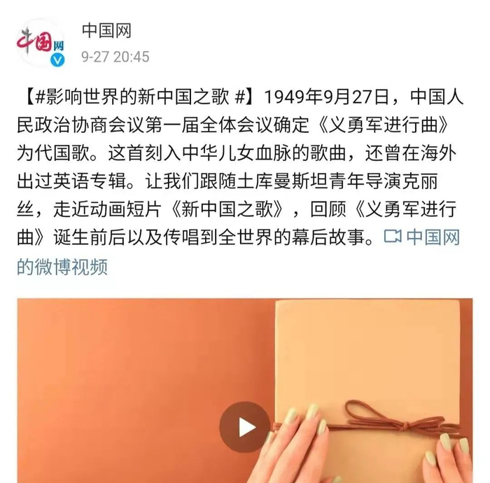 在新中国成立72周年之际,北京师范大学中国文化国际传播研究院、中国对外书刊出版发行中心(国际传播发展中心)、上海大学上海温哥华电影学院、上海大学新闻传播学院、深圳雅文教育文化传媒有限公司共同推出了这部短片。在那个硝烟弥漫的年代,充满勇气和斗志的《义勇军进行曲》曾唤醒了无数国人的希望,相信这部短片的传播也将让更多人了解中国国歌背后蕴含的精神力量。