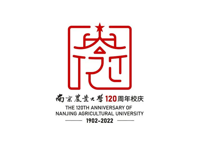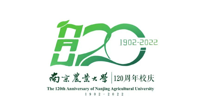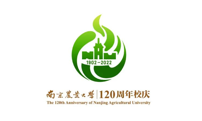 “南京农业大学”取自南农校徽,1902-2022代表学校120年的历经沧桑的光辉历程,整体标识大气、灵动、有张力。