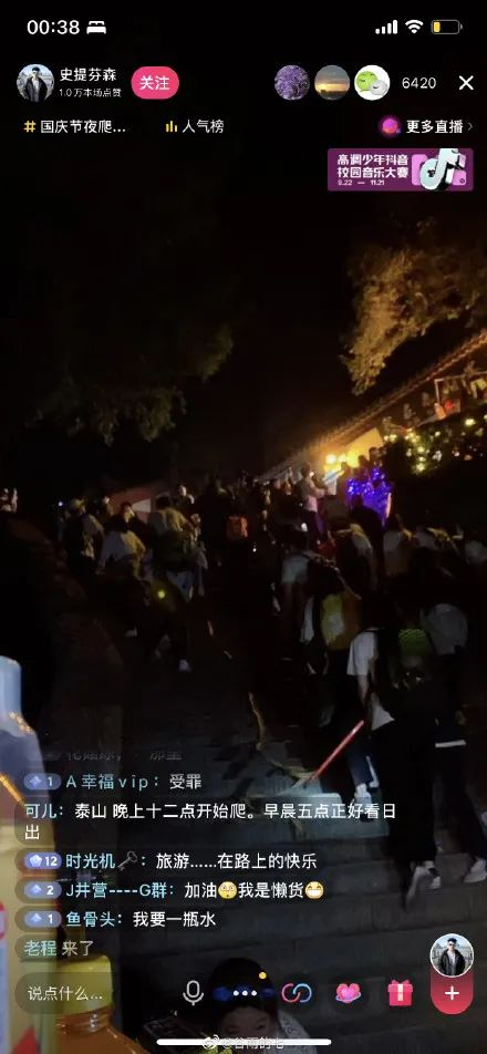 今天凌晨,有网友在社交网站发帖显示在攀登泰山,从网友拍摄的短视频看,泰山的登顶道路出现拥挤,游客前行速度也非常缓慢。