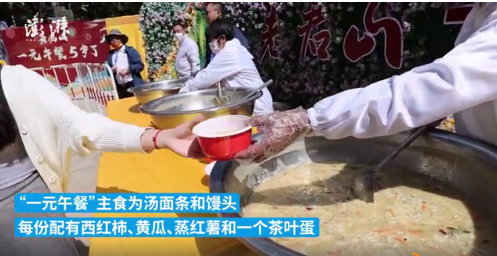据主办方介绍,因为今年是国庆一元午餐的第五个年头了,将往年游客多给的钱购买了当地的土鸡蛋制作成茶叶蛋,来庆祝一元午餐的五周岁生日,同时也丰富一下一元午餐这份“简单”的午餐。