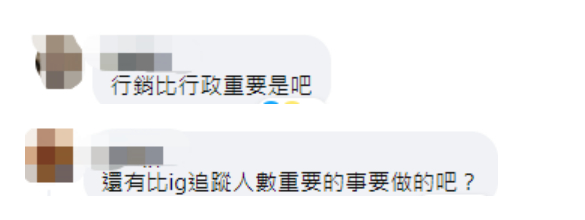 还有网友质疑,“行销比行政重要是吧!”“还有比INS追踪人数重要的事要做的吧?”