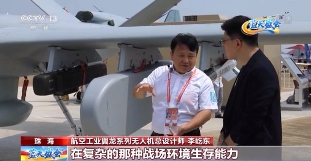 航空工业翼龙系列无人机总设计师 李屹东:从这一届的航展上的产品来看,我们的(翼龙)家族更加丰富,丰富在我们的应用场景上的拓展。这种中空长航时的无人机,它有自己的特点。它的特点就是(飞行)时间长、距离远,而且环境适应能力更强。这种情况下特别适合在这一些极端情况来使用,比如灾害现场,比如需要进行大范围的勘测等等。