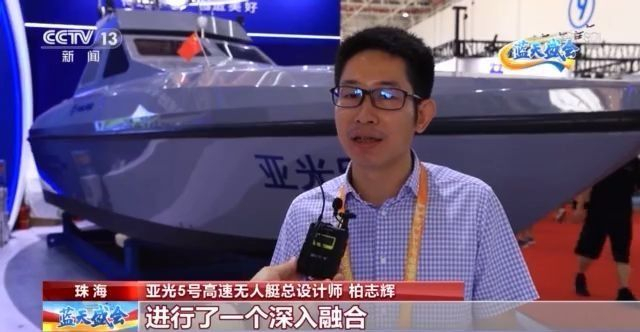 亚光5号高速无人艇总设计师 柏志辉:(艇上)通信和北斗导航进行了深入融合,使得我们通信导航链路的可靠性更高。另外我们还设置了安全模块,使得我们的通(信)导(航)链路受到强干扰的情况下,我们的艇还可以自主安全返回。