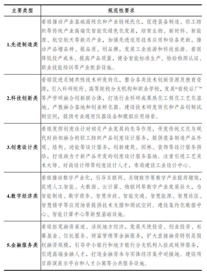 特色小镇应秉持少而精、少而专方向,在确实具备客观实际基础条件的前提下确立主导产业,宜工则工、宜商则商、宜农则农、宜游则游,找准优势、凸显特色,切不可重复建设、千镇一面,切不可凭空硬造、走样变形,切不可一哄而上、贪多求全。制造业发达地区可着重发展先进制造类特色小镇,先进要素集聚地区可着重发展科技创新、创意设计、数字经济及金融服务类特色小镇,拥有相应资源禀赋地区可着重发展商贸流通、文化旅游、体育运动及三产融合类特色小镇。