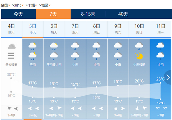 据省气象服务中心预报,1至7日湖北省先晴后雨,2日开始西部高速沿线有分散性阵雨,6、7日全省有一轮大范围降雨降温过程,如:恩施、襄阳、十堰、神农架等地都有不同程度降水,司机朋友要注意防范降雨之后路面湿滑、温差大团雾天气带来的不利影响。