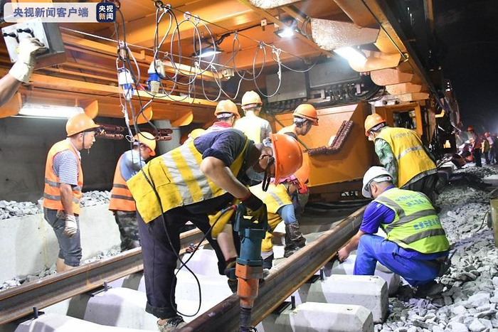 10月5日,在位于云南省景洪市境内的中(国)老(挝)昆(明)万(象)铁路景寨隧道内,随着现场负责人的一声令下,CPG500型铺轨机将一对500m长钢轨铺设到景寨隧道整体道床上,开启了中老铁路国内段最后26公里铺轨的冲刺。