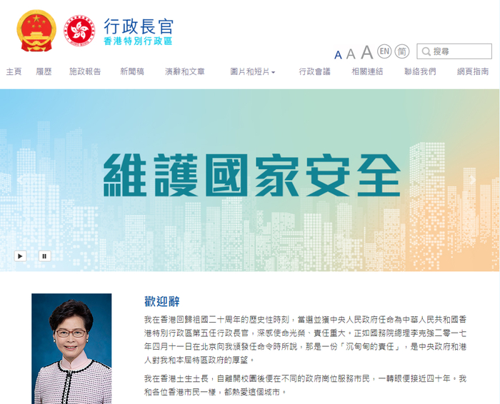 报道称,除了上述四个网站,目前其他政府网页如贸发局、创新及科技局、保安局等政府网页还只有区徽,没有国徽图案。