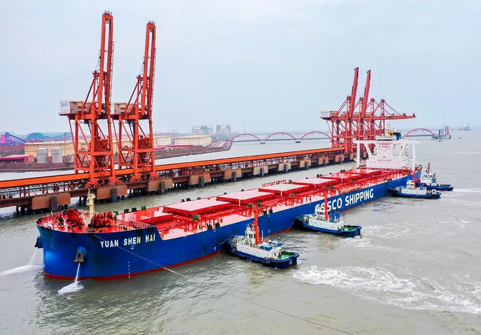 中国远洋海运远神海轮刷新曹妃甸港直靠船舶“三项第一”纪录