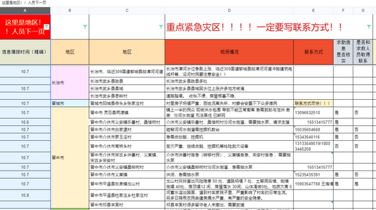 在西安读书的大三女生祁同学@小祁今年要加油 得知老家山西多地遭遇连日强降雨,为尽绵薄之力,特地建立了在线共享文档,以供大家提供救援和灾情信息,方便开展救援工作。