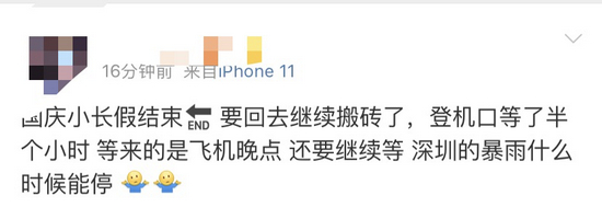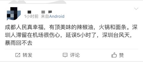 而有的人返深的路上因暴雨飞机晚点