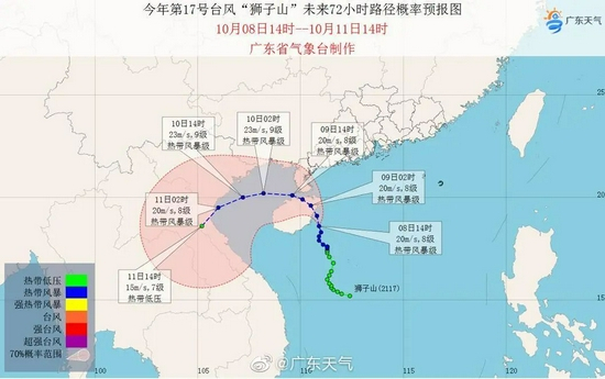 10月8日05时,南海的热带低压加强为今年第17号台风“狮子山”(热带风暴级,英文名:LIONROCK,来源:香港,意义:山峰名字);