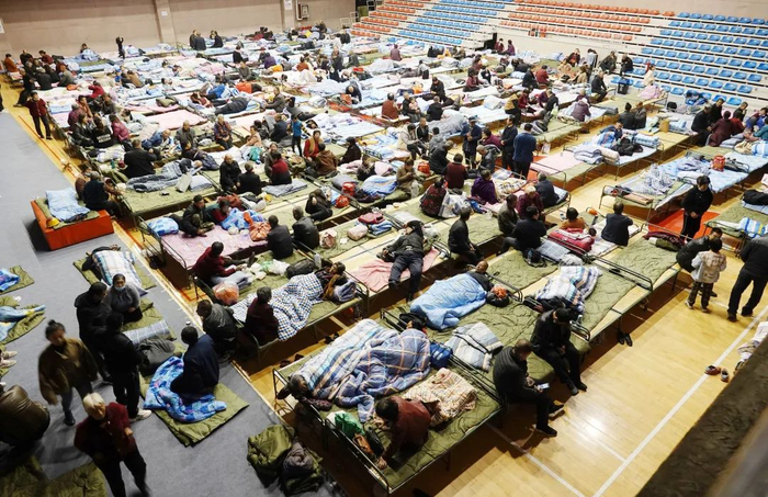 10月8日,新京报记者探访山西运城新绛县体育馆洪灾安置点,有876名灾民撤离后在此暂住。现场提供床位、被褥及一日三餐保障,新绛县多部门90余人轮班值守。有受灾村民称,7日凌晨三点提前通知撤离,当时只穿一身衣服,房子还好好的,现在淹的有一人深。安置点负责人称,该安置点优先安排年龄大、身体差的村民床位,其余村民打地铺。