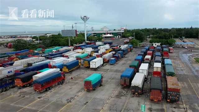 由于此次停航恰逢国庆黄金周进出岛高峰期,且时间较长,受影响的出岛小轿车约8000台左右,大货车约5000台。为了避免路面交通拥堵,琼州海峡实行的是预约过海方式,交管部门在通往码头的道路上分别设置了大货车和小轿车专用过海通道,引导车辆顺畅通行。10日上午9点看看新闻Knews记者在海口新海港码头看到,等待出岛的车辆正在有序排队进港。