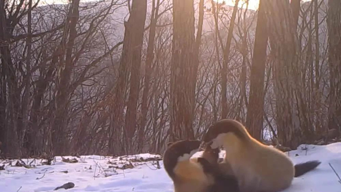 而此次北师大虎豹研究团队在东北虎豹国家公园发现的是多种不同变异色型的黄喉貂个体,包括前半身几乎全部白色个体,以及“白爪”“白脚”“白头”个体,与书中的“花狐貂”十分相像,推测该变异色型黄喉貂为其原型。