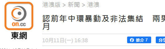港媒:承认前年参与暴动及非法集结,香港2名男子分别被判入狱40个月与9个月