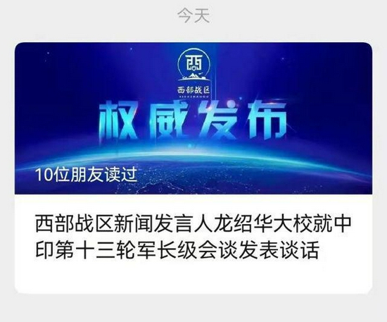 双方第十三轮军长级会谈10日举行,双方经过数小时谈判后,西部战区突然于11日凌晨发表了一份极为罕见的谈话。